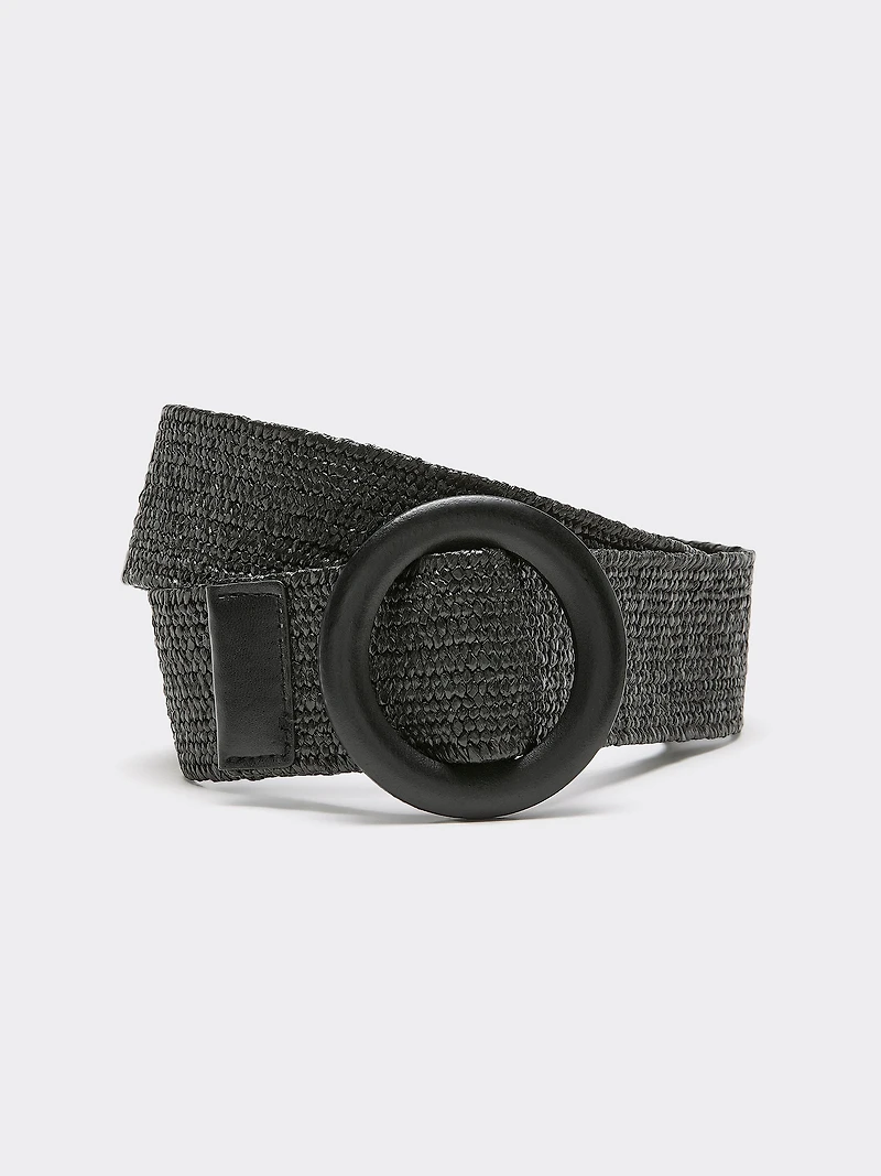 Ceinture élastique en paille avec boucle ronde bois