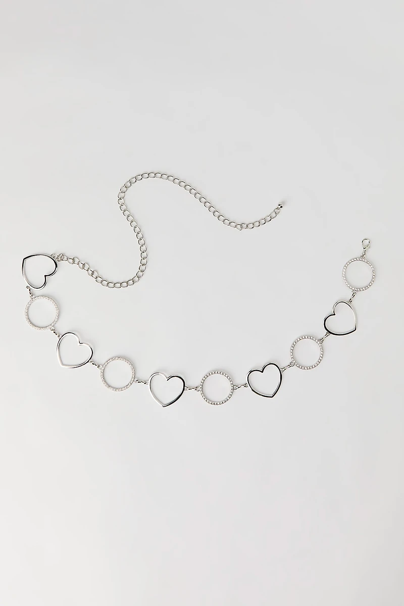 Ceinture en chaîne avec pierres du Rhin, anneau en O et breloque coeur