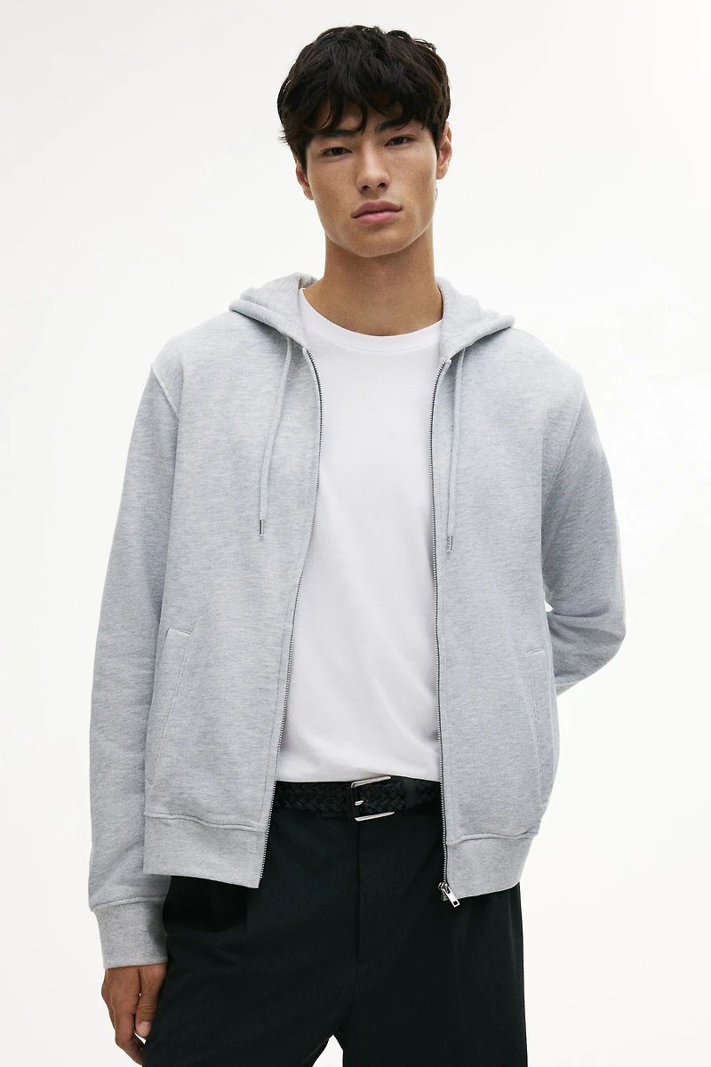 Veste en molleton d'épaisseur moyenne. Modèle avec capuchon doublé de jersey, resserrable par cordon, et fermeture à glissière devant. Poches latérales. Ourlet côtelé aux poignets et à la base. Coupe classique pour une silhouette classique et un plus grand confort.