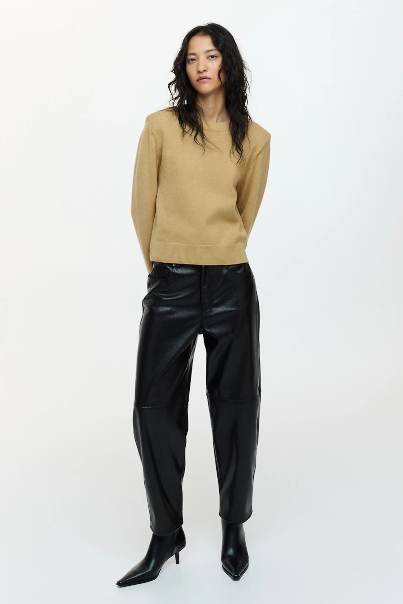 Chandail en fin tricot doux. Modèle à épaulettes avec finition côtelée à l'encolure, aux poignets et au bas.