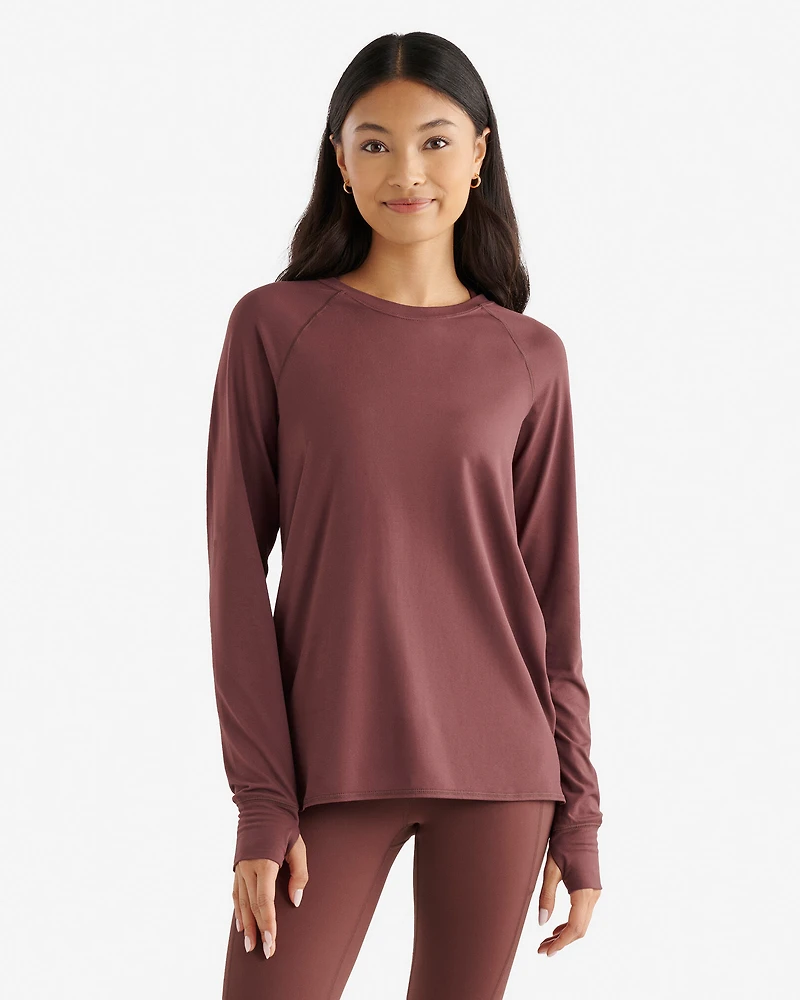 Notre Chandail à manches longues Renew présente désormais un ourlet droit et des fentes latérales pour une silhouette plus classique.