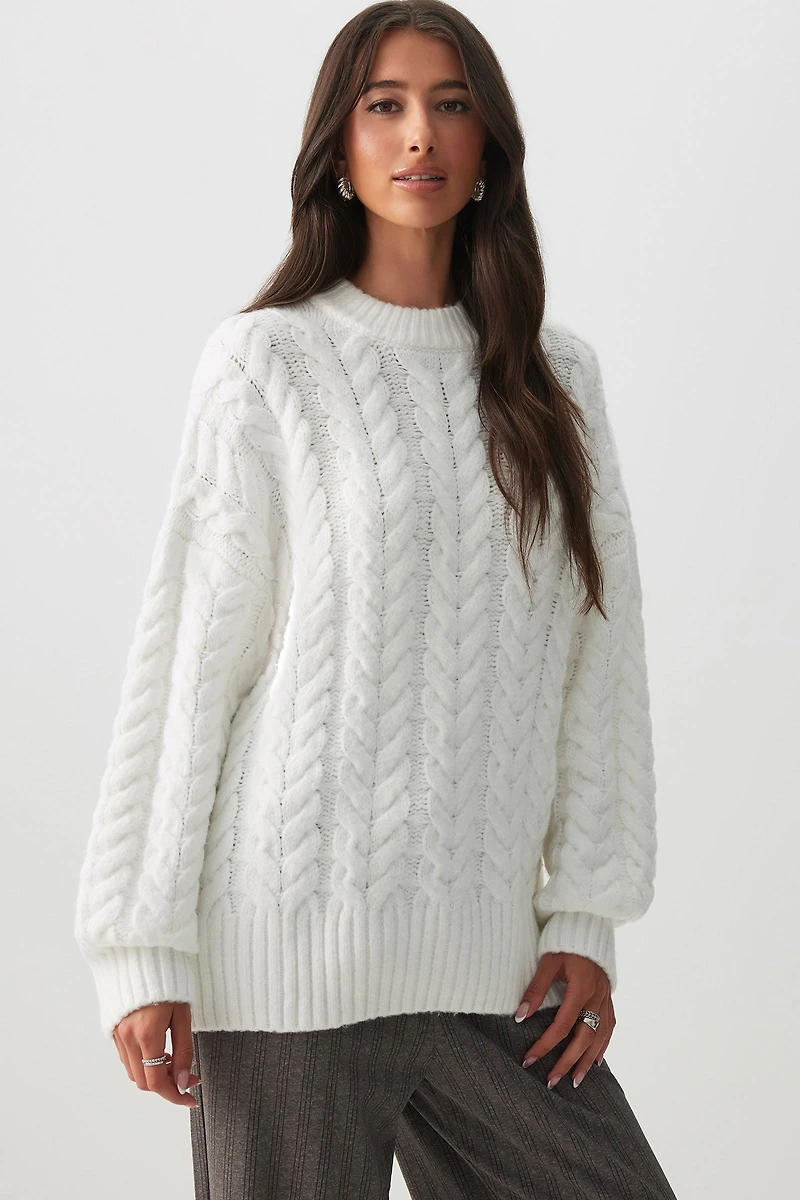 Chandail ample à col rond en tricot torsadChandail ample à col rond en tricot torsadChandail ample à col rond en tricot torsadChandail ample à col rond en tricot torsad