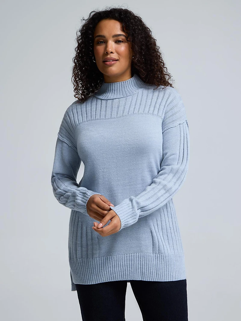 À la recherche d'élégance au quotidien? Vous y arriverez en toute simplicité avec ce chandail tunique à col montant qui apportera une touche raffinée à votre look.