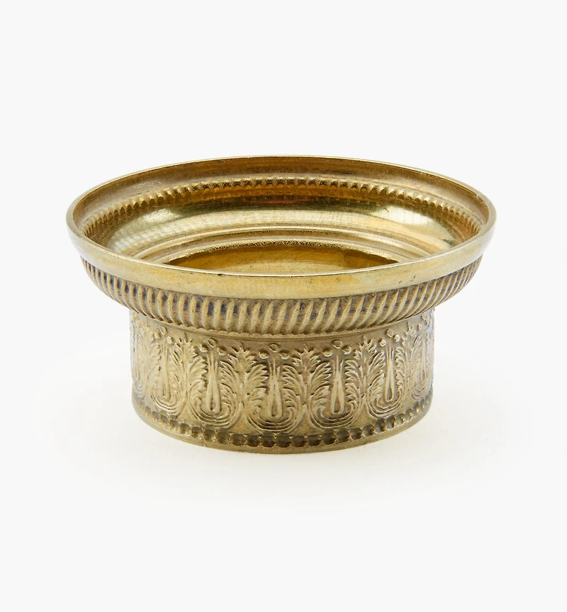 Servant généralement à décorer des meubles dotés de colonnes, ces chapiteaux rehaussent considérablement l'apparence du mobilier. Taillée dans une feuille de laiton, chaque pièce finement détaillée comporte un rebord à épaulement. Chaque chapiteau se fixe à l'aide d'un seul clou.