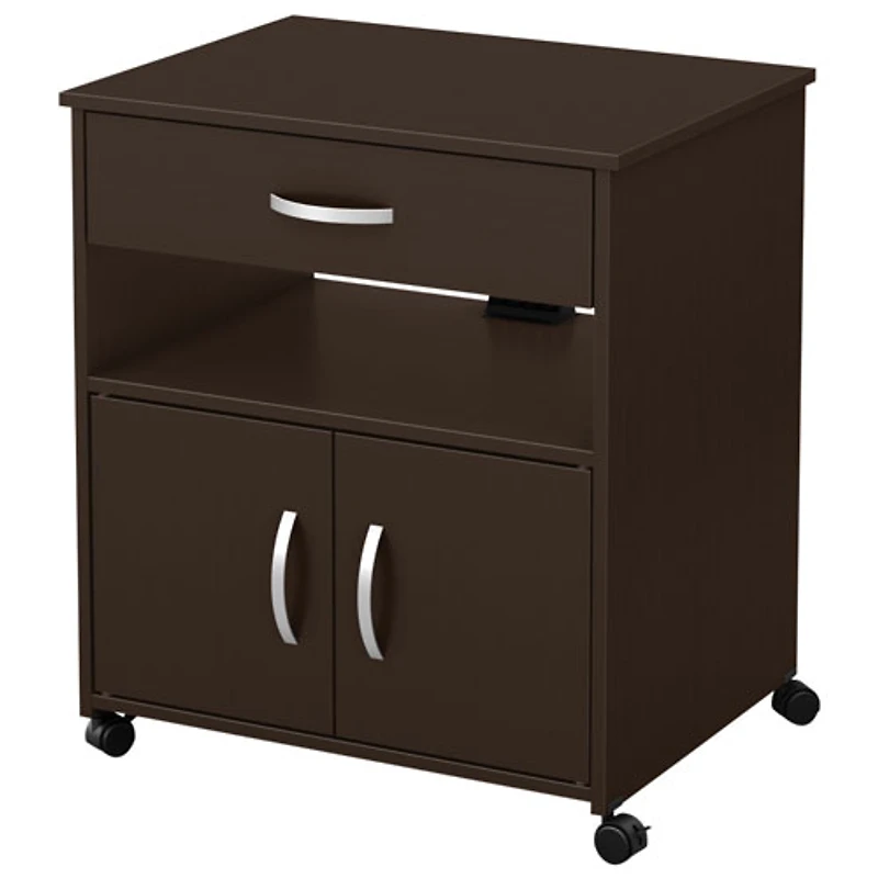 Gardez votre cuisine bien rangée avec ce chariot pour four à micro-ondes au fini brun foncé de la collection Fiesta de South Shore. Ce chariot de style contemporain est monté sur roulettes pour que vous puissiez le déplacer facilement. Des espaces de rangement ouverts et fermés, ainsi qu'un tiroir, vous aident à organiser vos livres de recettes, vos accessoires de cuisine, vos épices et plus encore.
