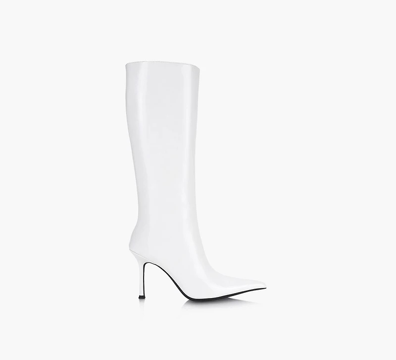 Une botte haute classique à talons aiguilles, avec une fermeture éclair latérale et un empiècement texturé pour un meilleur ajustement. Élégante avec son bout pointu, Charlotte mise sur la simplicité pour vous aider à briller.