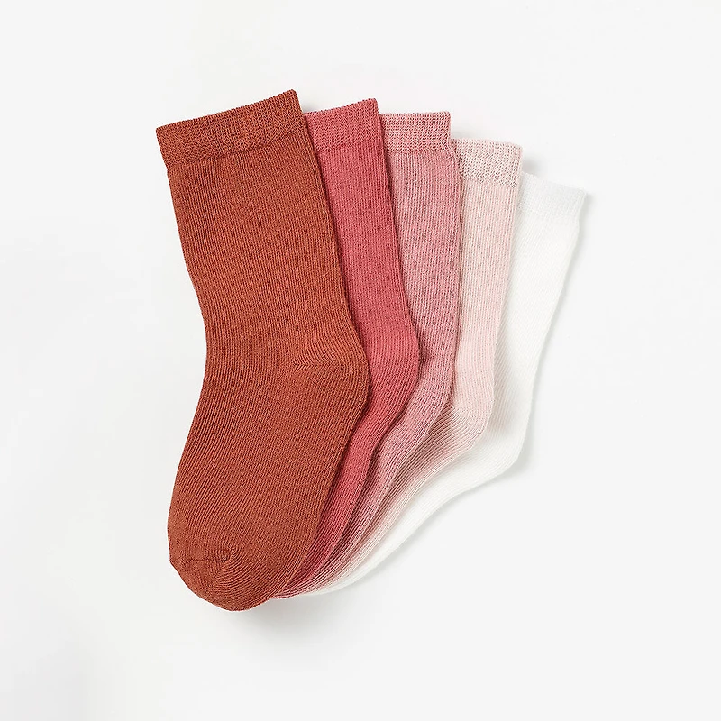 Les petits orteils restent au sec et au chaud dans ces chaussettes mi-mollet de base ultra douces. Offertes en paquet de cinq paires, faites d'un tissu composé de 78 % coton, 21 % polyamide et 1 % élasthane. Faciles à enfiler pour partir à l'aventure. Offertes en blanc, noir, rose, bleu ou à rayures pour agencer avec la garde-robe de bébé.