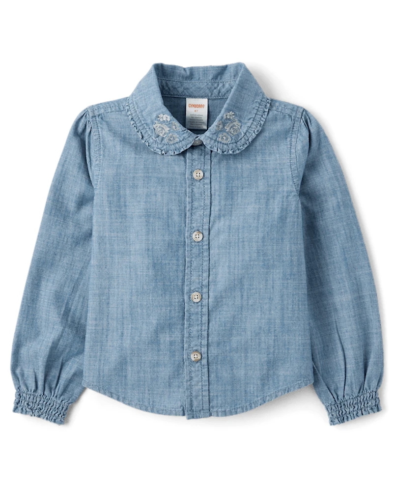 Chemise boutonnée en chambray fleuri brodé pour fille - Célébrations d'automne