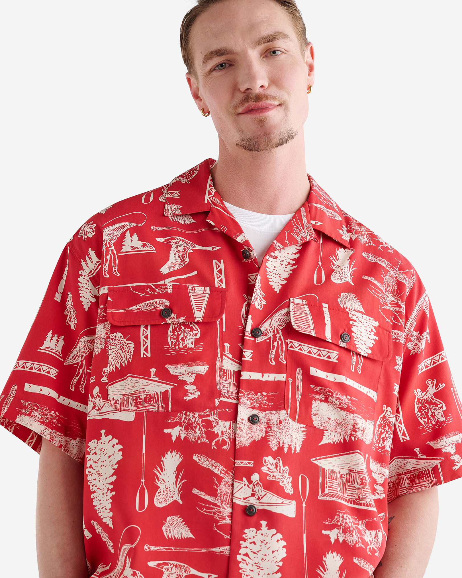 Notre Chemise Camp Spruce présente un imprimé d'inspiration canadienne et ajoutera une touche estivale à votre tenue.