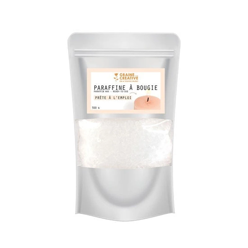 Un mélange de cire à bougie prête à l'emploi composé de 450 g de paraffine et 50 g de stéarine. Il suffit de faire fondre la préparation au bain-marie, puis verser dans un moule. Et si vous n'utilisez pas toute la cire, laissez-la refroidir !