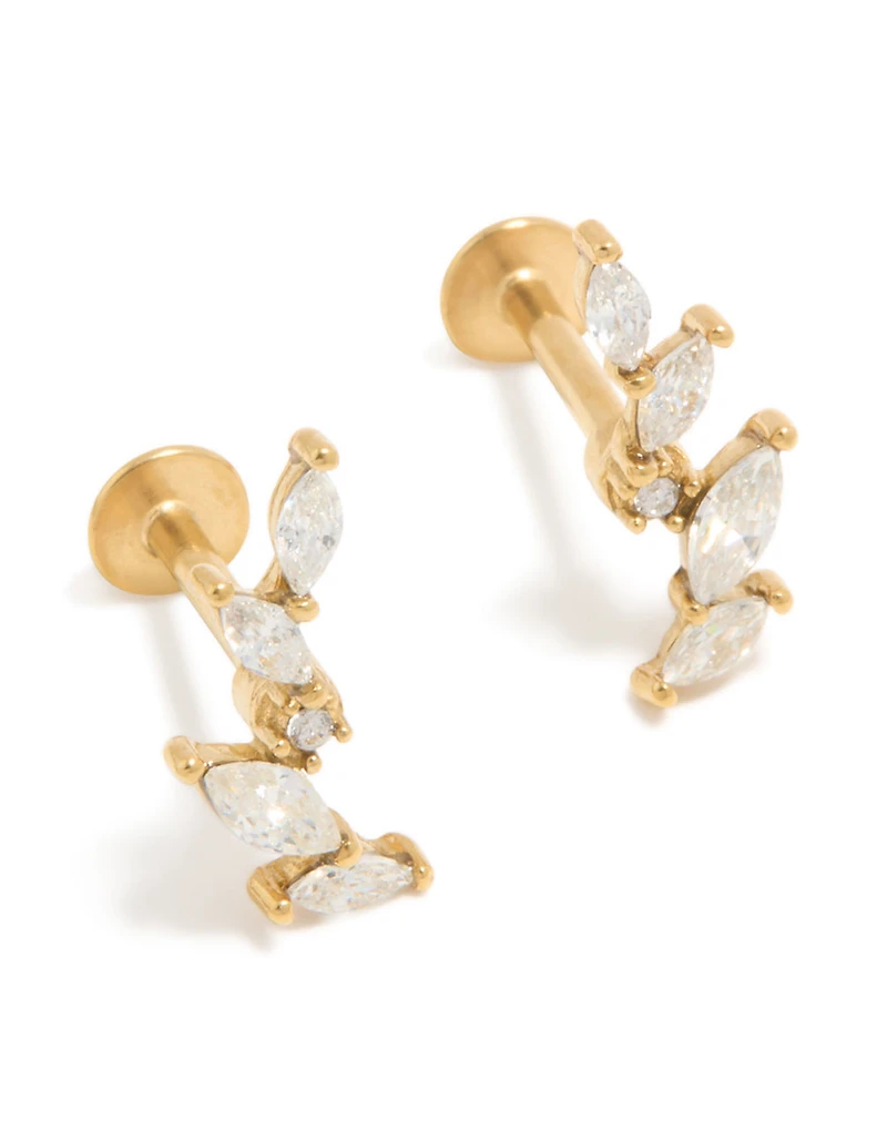 Transformez votre pile d’oreilles en mini jardin avec ces clous à dos plat en zircone en acier chirurgical cubique plaqué or. Ce délicat design de boucles d’oreilles en forme de feuilles rampante s’incurve stylément vers le haut de l’oreille, offrant un look chic et superposé avec un seul piercing. Fabriqués en acier chirurgical plaqué or et conçus pour les oreilles sensibles, ces clous plats pour le dos sont parfaits pour être portés toute la journée au travail ou les fins de semaine. Les cristaux cubiques de zircone scintillants ajoutent un éclat subtil qui s’accorde parfaitement avec un denim décontracté, une jolie robe d’été ou votre tenue préférée pour sortir. Matériau : Zirconie cubique, plaqué or, acier chirurgical Couleur : Or, Transparent Dimensions : Longueur de conception avant 12 mm x Largeur de conception avant 5 mm