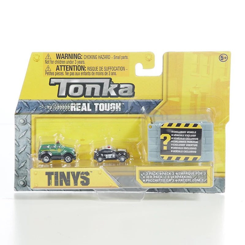 Avec Tonka Tinys, tous les véhicules Tonka préférés des enfants sont maintenant offerts en miniature! Cette nouvelle gamme de superbes véhicules Tonka offre tous les véhicules emblématiques de sauvetage, de construction et urbains en version minuscule ingénieuse. Le paquet de trois mini véhicules Tonka Tinys comprend 2 véhicules connus et 1 véhicule mystère offert avec son propre garage Tonka Tinys! Chaque véhicule à roues libres est confectionné avec le souci du détail et ressemble exactement au vrai modèle? Dès 5 ans.