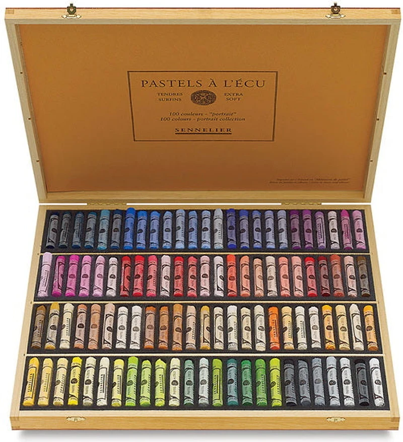 Cet ensemble de 100 pastels contient des pigments et des liants de haute qualité de formule spéciale pour une sensation velouté. Ces pastels peuvent être mélangés facilement. Ils sont un favori parmi les artistes professionnels et les débutants. Offert dans une boîte de transport pratique en bois.Quantité : 100