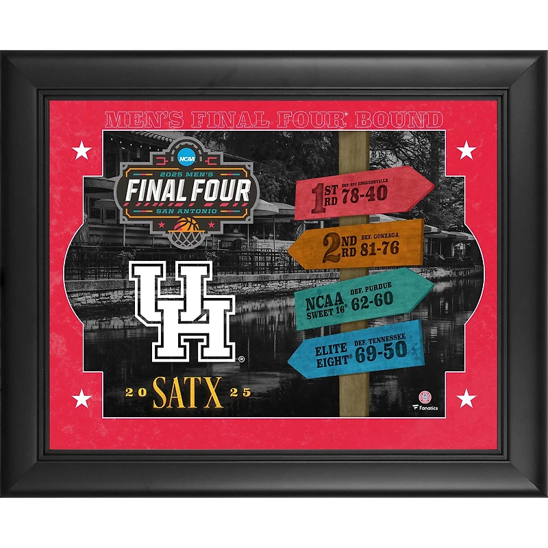 Collage encadré des Cougars de Houston (13" x 16") du tournoi de basketball masculin NCAA 2025, Final Four de March Madness