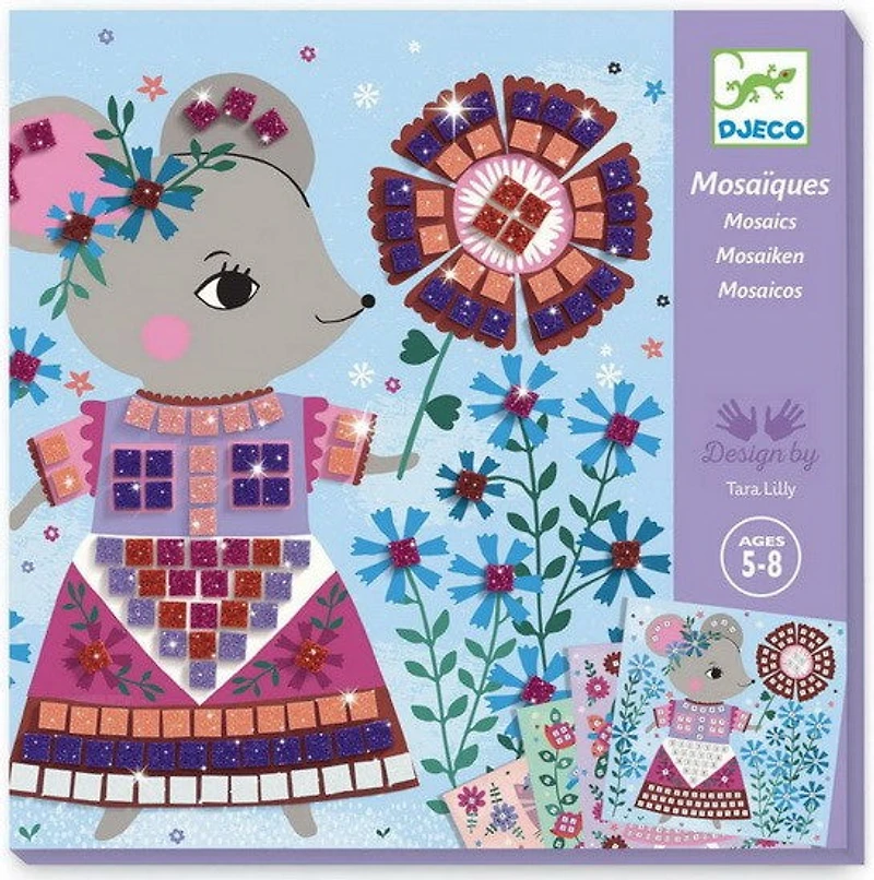 Un coffret pour s'initier à l'art de la mosaïque en décorant les tenues de ces adorables personnages. 4 tableaux à compléter avec de petits carrés de mousse pailletée qui s'utilisent comme des stickers. L'enfant repère les numéros puis colle les pièces correspondantes à l'emplacement désigné sur la planche. Les tableaux se remplissent et les personnages prennent vie.