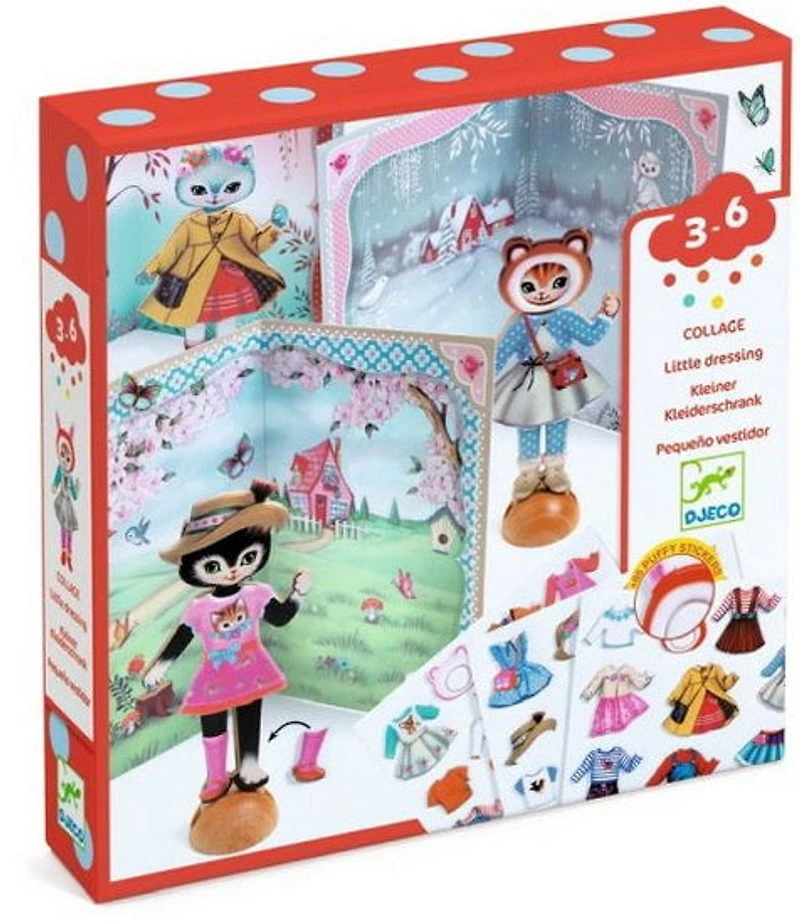 Une activité de collage pour habiller 3 adorables chats en bois avec plus de 45 habits, à coller et recoller selon ses envies ! Il n'y a plus qu'à inventer les plus belles histoires grâce aux trois décors.