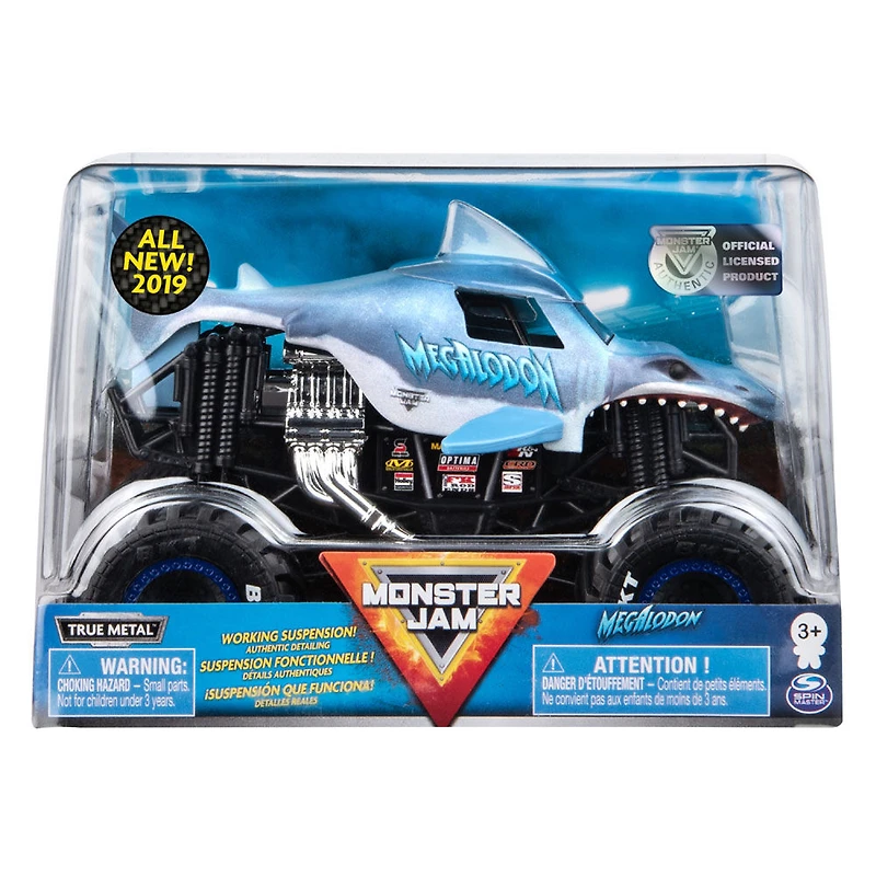 Écrasez tout sur votre passage avec ce nouveau monster truck Monster Jam officiel en métal moulé à l'échelle 1:24 ! Avec ses pneus BKT officiels et son système de suspension fonctionnelle, cette réplique authentique à l'échelle 1:24 vous promet des heures d'amusement ! Le système inédit de suspension fonctionnelle absorbe encore mieux les impacts, pour encore plus de sauts incroyables ! Cette série de véhicules en métal moulé à l'échelle 1:24 comporte davantage de détails et de décorations hyper réalistes, pour vous mettre encore plus dans l'ambiance Monster Jam ! Des détails incroyables recréent toute l'intensité de Grave Digger, El Toro Loco, Megalodon et d'autres célèbres monster trucks Monster Jam ! Découvrez encore plus de monster trucks Monster Jam à collectionner ! Collectionnez-les tous et démolissez tout sur votre passage pour remporter la victoire lors de votre propre événement Monster Jam ! Qu'attendez-vous pour commencer ? À partir de 3 ans. Contenu : 1 monster truck Monster Jam Passez à la vitesse supérieure avec ce nouveau monster truck Monster Jam officiel à l'échelle 1:24 ! Avec plus de détails et de décorations que jamais, cette réplique authentique reproduit parfaitement le style et la personnalité du véritable monster truck ! Grâce aux pneus BKT officiels en caoutchouc et à leur traction améliorée, votre monster truck atteindra de nouveaux sommets ! De plus, le tout nouveau système de suspension fonctionnelle absorbe encore mieux les impacts, pour vous permettre de tout démolir sur votre passage ! Avec encore plus de monster trucks à collectionner, vous pouvez organiser votre propre événement Monster Jam hyper facilement ! Poussez votre monster truck Monster Jam jusqu'à ses limites ! Collectionnez-les tous !