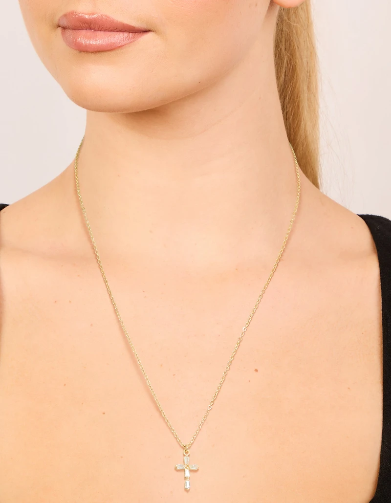 Collier croix cubique en zirconie plaqué or avec une baguette