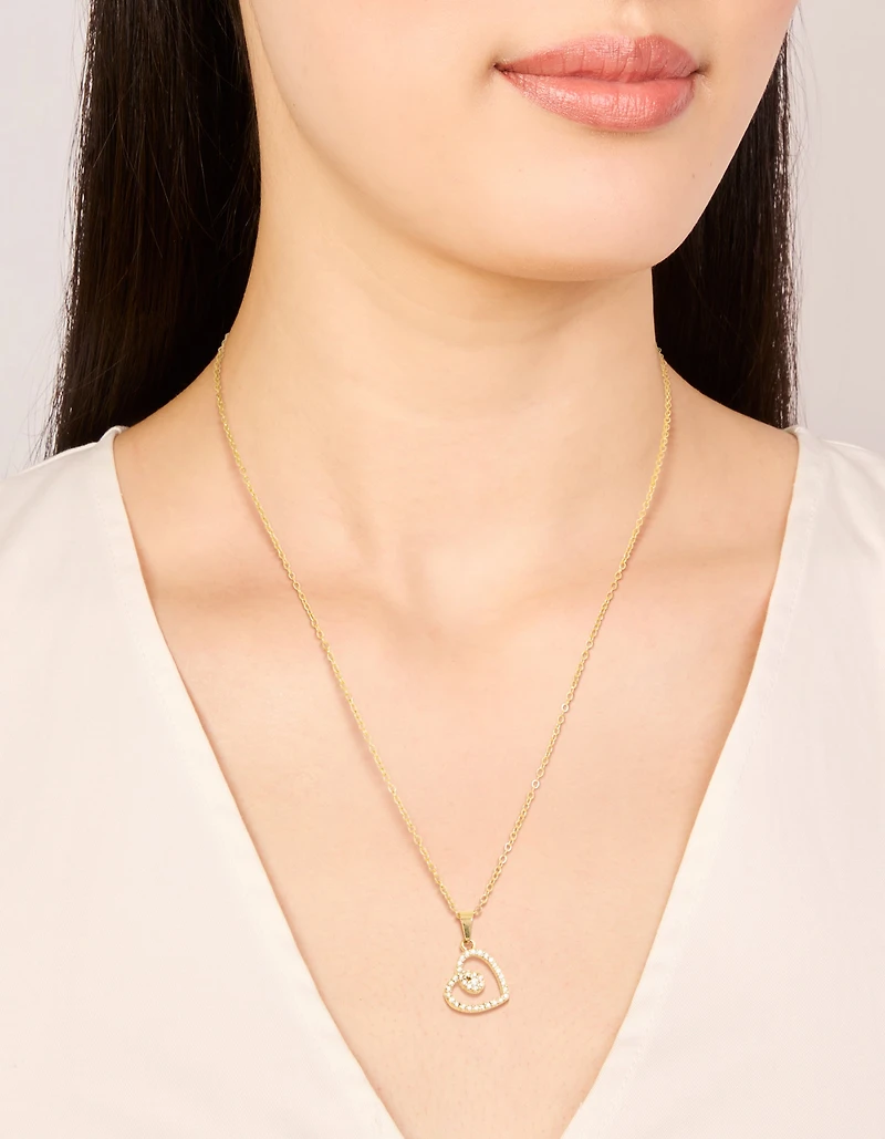 Collier pendentif en forme de cœur en zircone cubique en acier inoxydable plaqué or imperméable