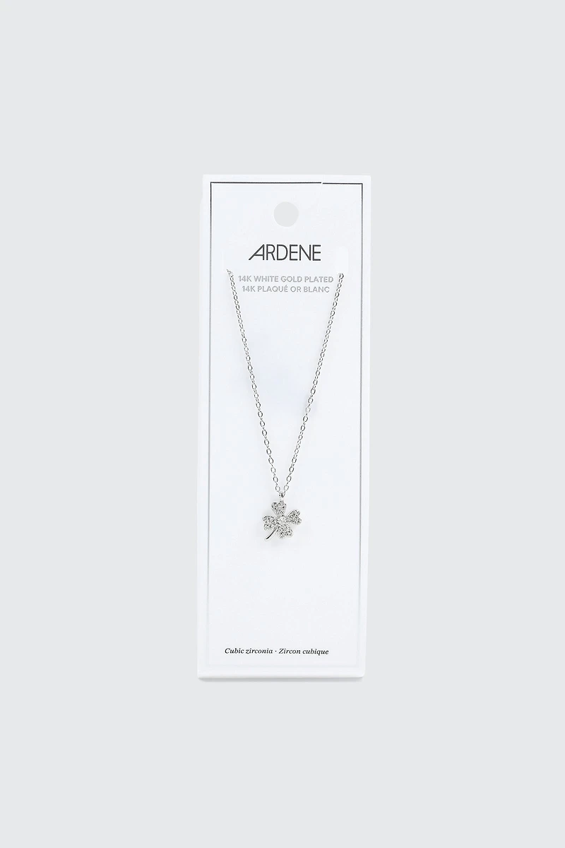 Collier plaqué or blanc 14K pendentif trèfleCollier plaqué or blanc 14K pendentif trèfle