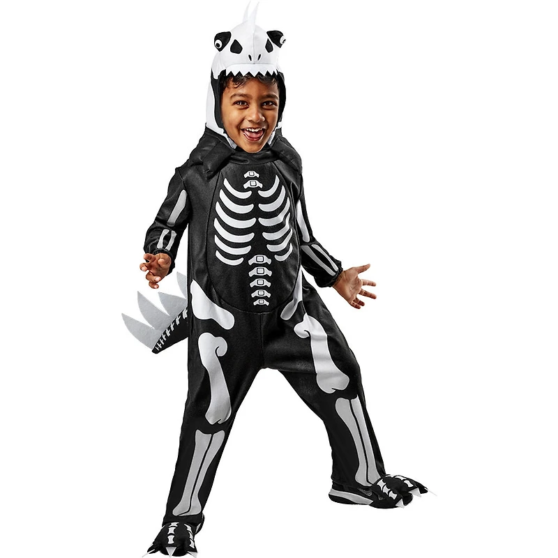 Si votre enfant hésite entre un costume effrayant ou préhistorique cette année, notre costume "Skelesaurus Rex" luminescent avec sons pour tout-petits rendra la décision facile ! Ce set comprend tout le nécessaire pour transformer votre petit en un redoutable dinosaure squelette de l'ère Mésozoïque. Il inclut une combinaison noire avec des détails squelettiques, comprenant une queue et des couvre-chaussures, une tête de dinosaure et une puce sonore à thème pour un effet supplémentaire. Vous allez adorer l'aspect féroce et amusant de votre enfant dans cet ensemble sensationnel !