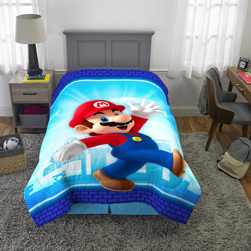 Couette Pout Lit 1 et 2 Place Super Mario "Power Up"