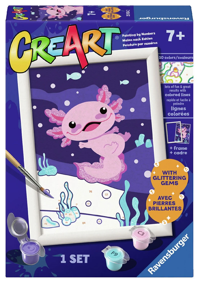 Ravivez leur joie en offrant à votre enfant un moment de détente avec notre ensemble de peinture par numéros CreArt " Axolotl " !