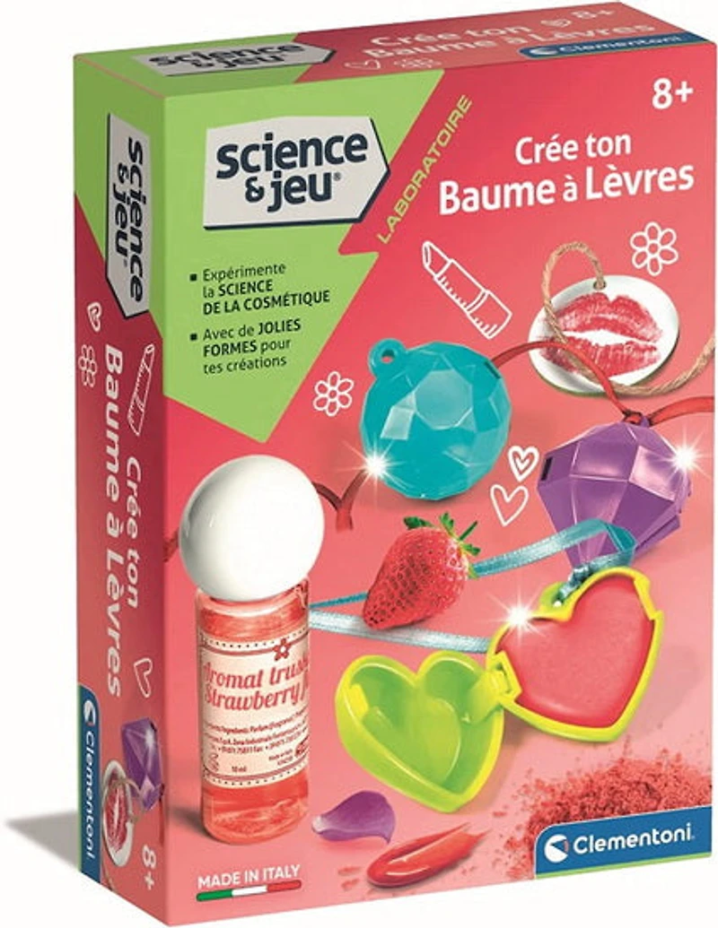 Un véritable coffret scientifique pour découvrir les secrets de la cosmétique et créer de fantastiques baumes à lèvres. Le coffret comprend une base de cire émolliente, un colorant en poudre et un délicieux arôme de fraise pour te permettre de créer un baume à lèvres doux et parfumé. Le coffret comprend également un mini verre doseur, une spatule et des pots pour t'aider à réaliser tes créations cosmétiques que tu pourras ensuite offrir. Les créations proposées sont faciles à réaliser grâce au manuel illustré. Fabriqué en Italie.