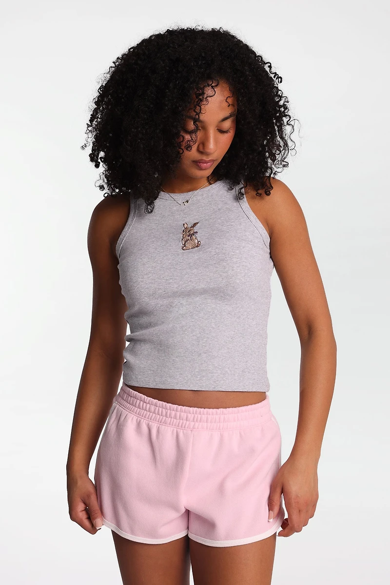 Débardeur côtelé à col haut brodé lapin