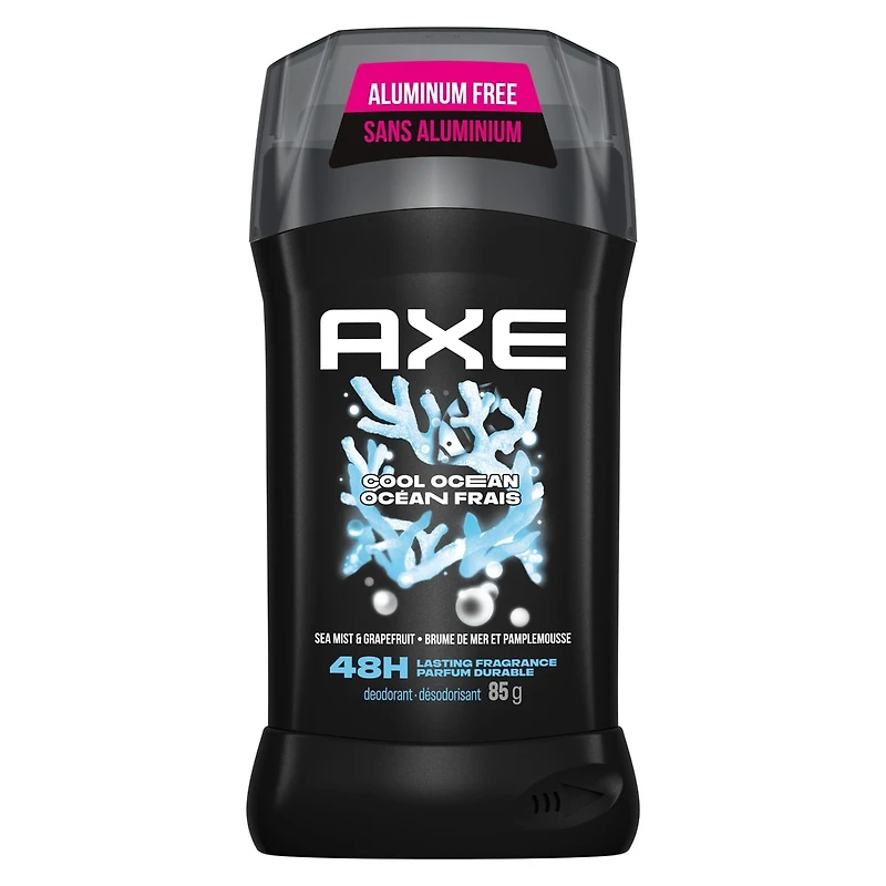 - Désodorisant en bâton pour hommes AXE Cool Ocean; Élimine les odeurs et sens-toi irrésistible pendant 48 heures avec notre désodorisant pour hommes au parfum léger et frais; Sens-toi revigoré avec ce désodorisant inspiré de l'océan au parfum vif et sauvage de cyprès à base d'huiles essentielles; Applique ce désodorisant sur tes aisselles propres et sèches, ressens la fraîcheur, sens-toi irrésistible; Ce désodorisant AXE ne contient pas d'aluminium, de parabènes ni de colorants; Tu aimes ce désodorisant en bâton AXE Cool Ocean ? Essaie l'atomiseur corporel, le nettoyant corporel et le shampooing et revitalisant 2 en 1 AXE Cool Ocean