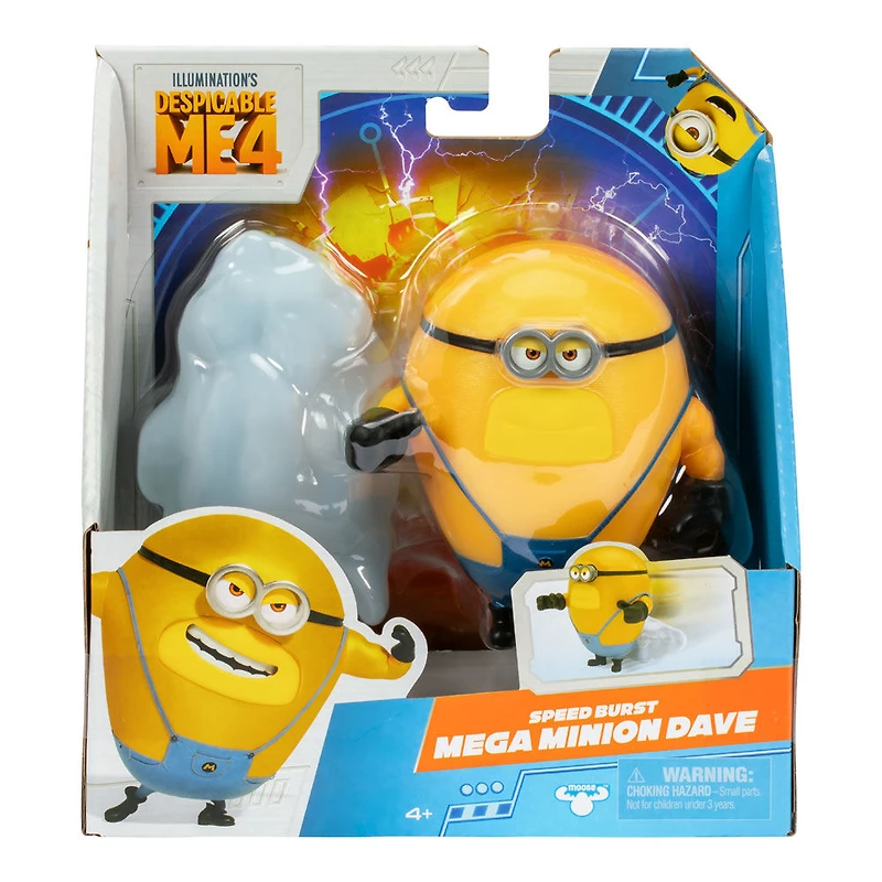 C'est l'heure du chaos avec les Minions ! De Moi, moche et méchant 4 vient la figurine d'action Speed Burst Mega Minion Dave ! Les Mega Minions sont des figurines pleines d'action qui tournent, se lancent, accélèrent, explosent et s'écrasent ! Préparez-vous pour des aventures folles alors que Mega Minion Dave fonce à toute vitesse ! Votre enfant adorera les mouvements et les fonctionnalités amusants des Minions pendant qu'ils jouent et reconstituent certaines de leurs scènes préférées du film ! Il y a 5 Mega Minions différents de Moi, moche et méchant 4 que les enfants peuvent collectionner, notamment Launch & Blast Mega Minion Mel, Crash & Roll Mega Minion Jerry, Wild Spinning Mega Minion Tim, Speed Burst Mega Minion Dave et Launch & Crash Mega Minion Gus ! Chacun a une fonction de jeu et des accessoires différents. Collectionnez-les tous et aidez les Minions à accomplir leur mission !