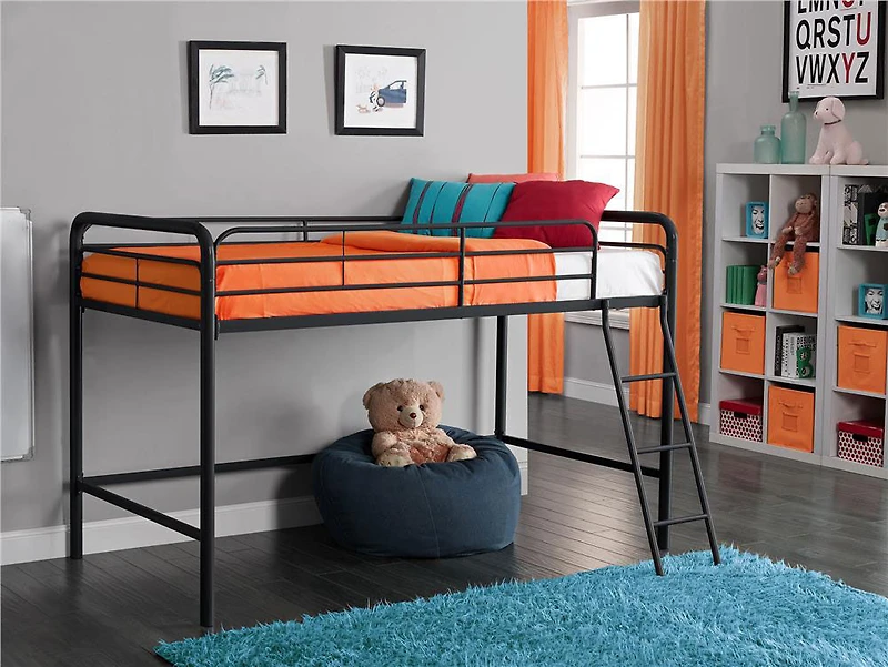 Le lit mezzanine Junior par DHP est parfait pour n'importe quel enfant dans votre maison. Adéquat pour des petites pièces, le design peu encombrant du structure métallique de ce lit surélevé est durable et solide pendant à des années d'utilisation.