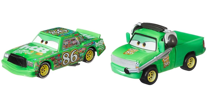Ce coffret de 2 authentique pour raconter des histoires donne vie aux scènes favorites du film "Les Bagnoles" de Disney/Pixar! L'ancien coureur de la Coupe Piston, Chick Hicks, et son chef d'équipe, Chef Chick, sont des véhicules en métal moulé sous pression très détaillés à l'échelle 1:55 dotés de concepts signature, des roues qui tournent vraiment et d'accents de personnalité uniques pour un jeu réaliste. Élargissez toute l'action du film et créez une collection dynamique avec nos autres coffrets de 2 personnages. Chacun est vendu séparément, selon la disponibilité. Les couleurs et les motifs peuvent varier.