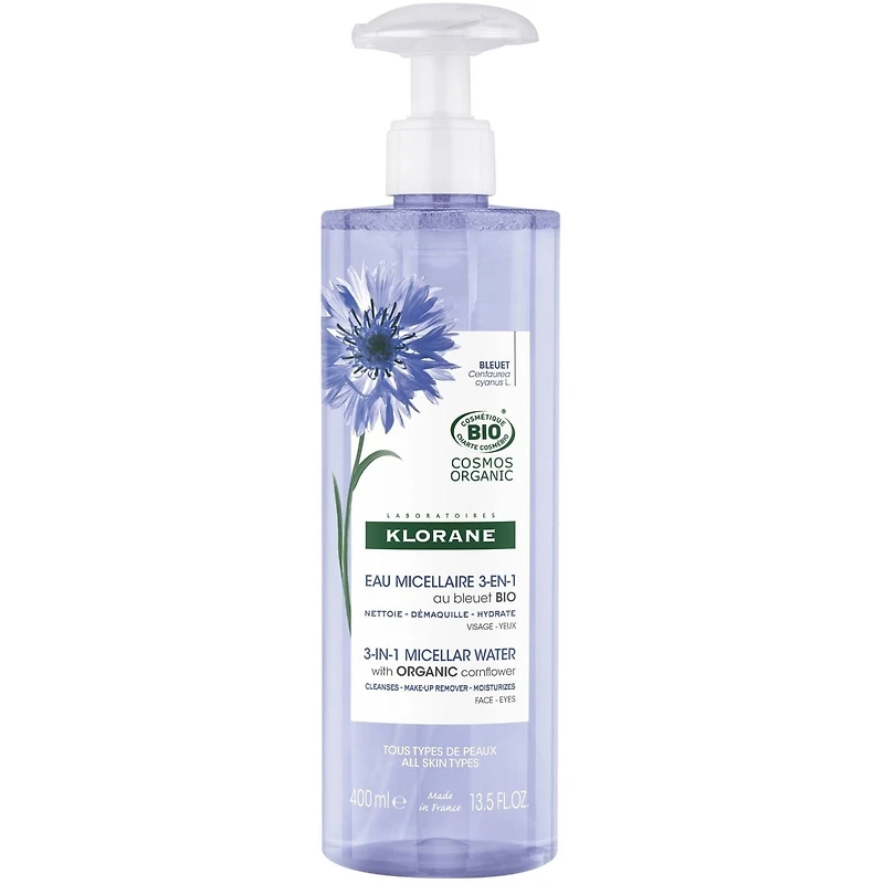 - La gamme de soins au Bleuet - Centaurea cyanus L. - offre ses vertus apaisantes aux peaux délicates et aux yeux les plus sensibles. Klorane cultive le Bleuet sur ses terres dans le Sud-Ouest de la France en agriculture biologique et dans le respect de l'éco-système. Son eau florale, extraite sur place en circuit court, est intégrée dans des formules à tolérance optimale. L'Eau micellaire 3 en 1 démaquille en douceur visage, yeux et lèvres et apaise immédiatement avec sa formule minimaliste de 6 ingrédients et à 90% d'origine naturelle. Élaboré pour minimiser les risques de réactions allergiques. Contrôle ophtalmologique. Flacon éco-conçu.