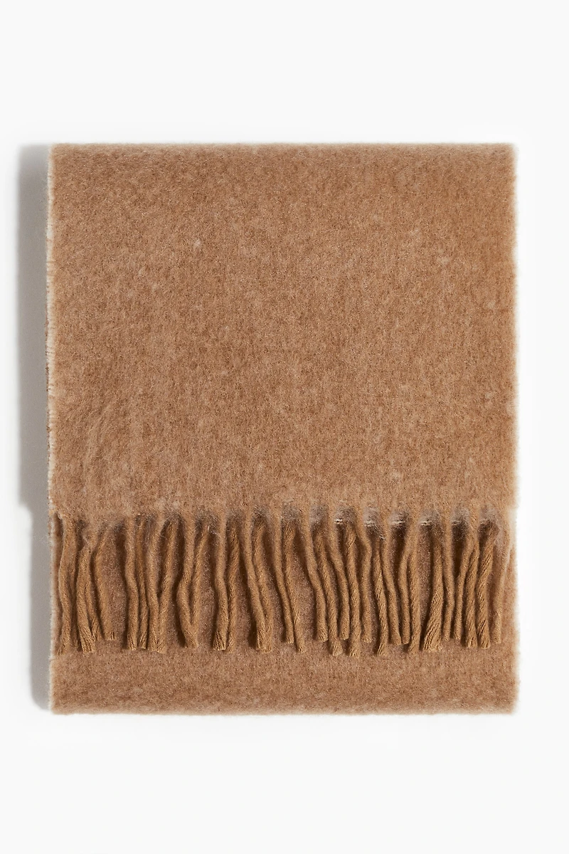 Écharpe en tricot doux. Modèle avec franges sur les largeurs.