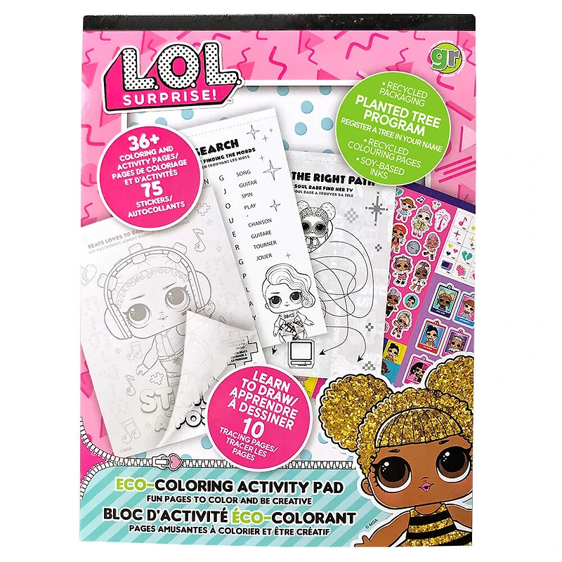 26 Pages de coloriage et d'activités 10 feuilles de papier calque 1 Page d'autocollants Le livre de coloriage moyen a plus de 36 pages de coloriage et d'activité et 68 autocollants. Fabriqué à partir de papier recyclé et imprimé avec des encres à base de soja, permet d'avoir des emballages recyclés et des pages à colorier recyclées.