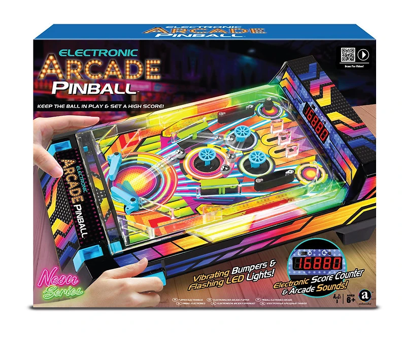 Apportez les frissons et l'excitation de l'arcade à la maison avec le jeu électronique de flipper d'arcade! Il n'y a pas de jeu plus lié à l'arcade que le flipper, et cet ensemble offre tout le plaisir dans un ensemble compact. Tout comme les flippers de l'arcade, l'objectif est de marquer autant de points que possible avant que votre balle ne tombe dans le drain 3 fois. Lancez votre balle en action et la machine prend vie. Alors que la musique de la bande-son d'arcade joue en arrière-plan, le tableau de bord électronique géant garde la trace de vos points. Ce flipper n'a fait aucun compromis sur les fonctions - les pare-chocs vibrent en fait lorsque la balle entre en contact avec eux, donnant une véritable sensation de flipper! Les lumières LED colorées des deux côtés de la machine s'allument lorsque vous marquez des points et atteignez certains jalons, et les effets sonores augmentent l'excitation. Cet ensemble de flippers entièrement automatisé détecte quand la balle tombe dans le drain et garde une trace de vos meilleurs scores. Tout le monde peut à tour de rôle essayer d'établir un nouveau score élevé! Pour 1 ou plusieurs joueurs. Nécessite 3 piles AA (non incluses). Recommandé pour les enfants de 6 ans et plus.