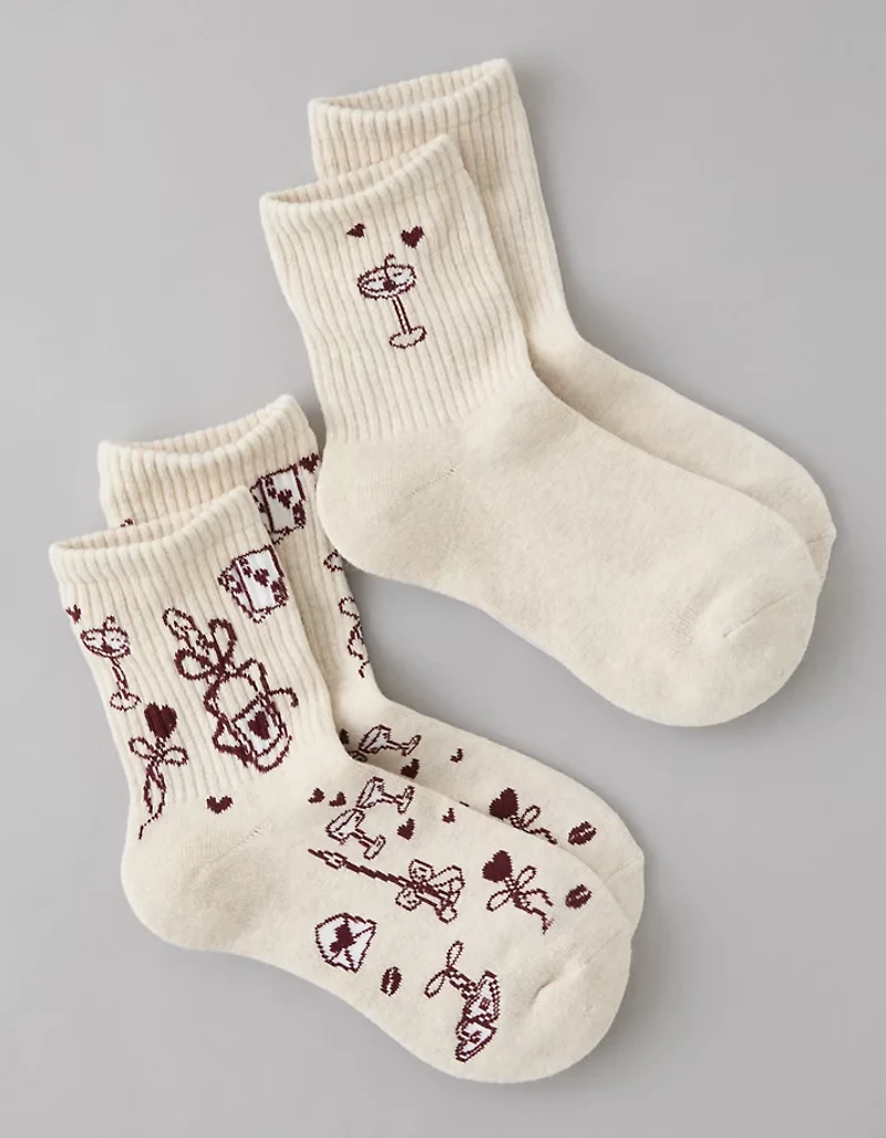 En cadeau à quelqu’un que tu aimes ou à toi-même, ces deux paires de chaussettes de la Saint-Valentin sont raccourcies à la longueur parfaite.