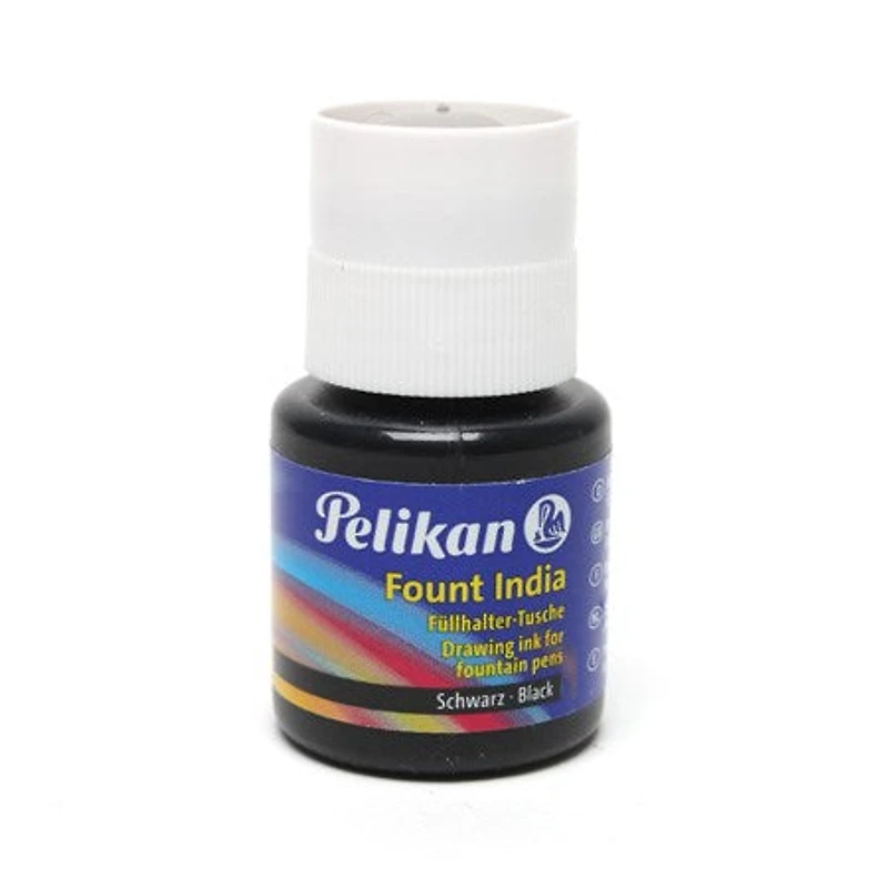L’encre à dessin Pelikan est indélébile et transparente sur le papier et le carton, sauf le noir et le blanc, peu résistante à la lumière et peu coûteuse. Elle convient pour les travaux d’aérographie.