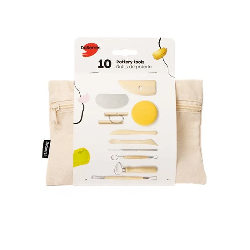 Ce kit comprend 10 outils de poterie et un sac de rangement. Idéal pour sculpter, façonner, modeler, couper, gratter, brosser, lisser, etc. Un produit de qualité signé DeSerres. Emballage 100 % recyclable fait à partir de matériaux recyclés.
