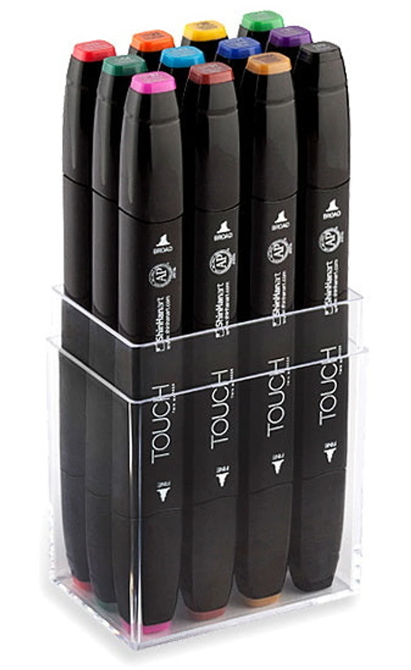 Ens. 12 marqueurs double pointe touch couleurs de base