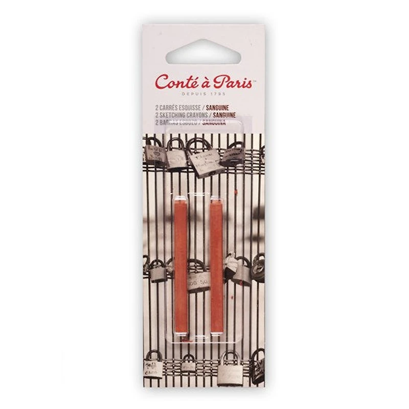Les carrés Conté sont idéals pour l’esquisse. Très doux à l’application, ils sont fabriqués à partir de pigments naturels (oxyde de fer, noir de carbone, dioxyde de titane), d’argile (kaolin) et d’un liant (éther cellulosique).  Convient à tout type de papier à grain (principalement les papiers mi-teintes), toile, ou support divers avec aspérités. Les carrés sont compatibles avec les pastels tendres et les crayons pastel.