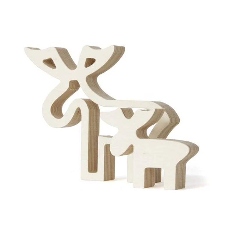 Ens. 2 décorations en bois naturel - rennes