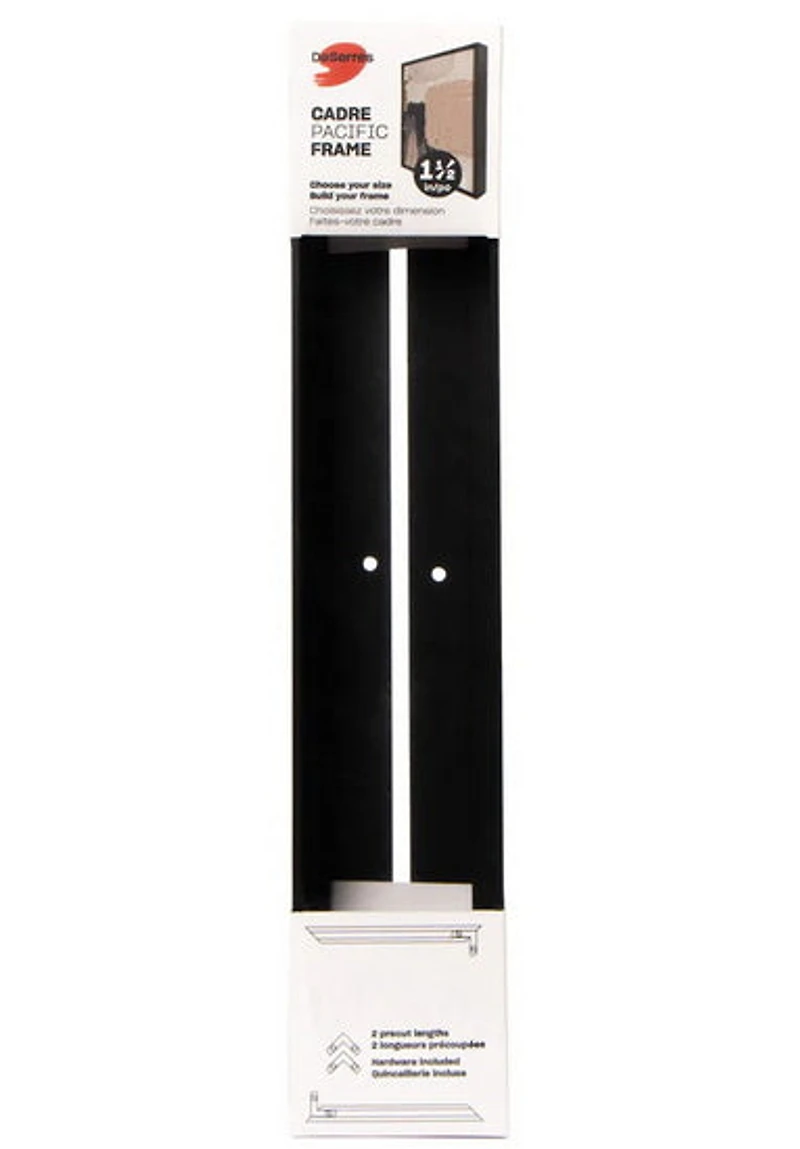 Grâce aux moulures de finition prédécoupées en métal signées DeSerres, l'encadrement de votre toile sera simple et rapide, quelle que soit sa taille. Choisissez simplement une paire de moulures pour votre hauteur, une autre paire pour votre largeur, assemblez le tout avec la quincaillerie fournie, et voilà : votre œuvre est prête à être accrochée et admirée !Plus épaisses et plus profondes que les moulures Atlantic, les moulures Pacific mesurent 1 ½ pouce de profondeur et 1 ½ pouce de largeur pour des toiles de format galerie d'une largeur allant de 12 à 60 pouces et d'une profondeur jusqu'à 1 ½ pouce. Les moulures Pacific sont conçues pour les toiles galerie. Les moulures Pacific et Atlantic ne sont pas compatibles.*Important* Pour un assemblage complet, vous devez acheter deux boîtes contenant deux moulures de finition pour avoir un total de quatre moulures.Spécifications : disponibles dans une variété de longueurstoile galerie avec 1 1/2 po de profondeurquincaillerie incluseLisez cet article pour en savoir plus sur les systèmes de moulage Pacific, ainsi que sur la manière de les assembler pour donner la touche finale parfaite à votre toile !