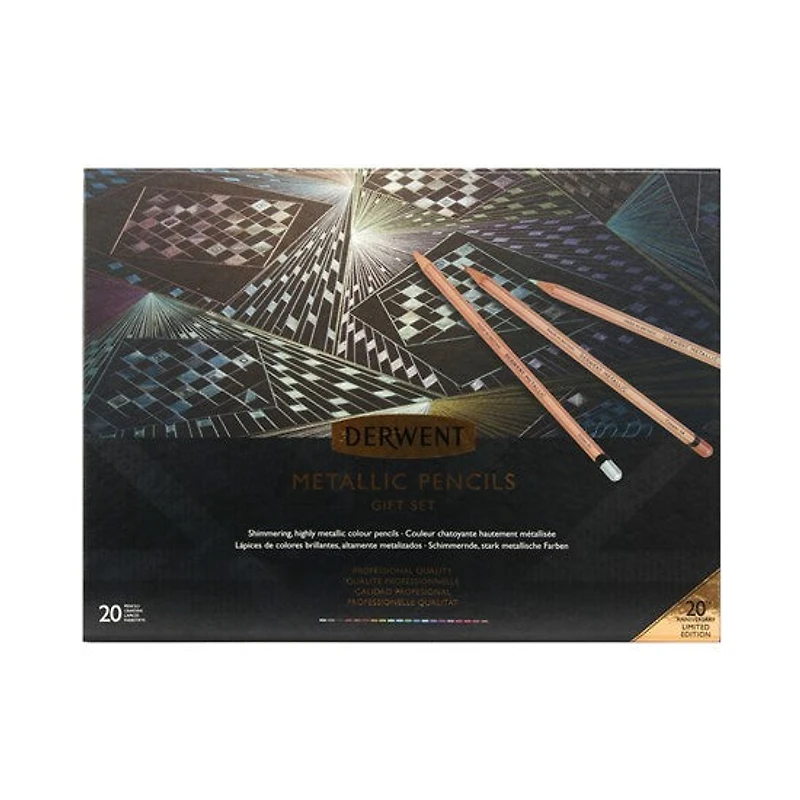Célébrant deux décennies de design et d’innovation Derwent, la nouvelle gamme métallique a été restylée et élargie — des artistes de tous âges pourront faire briller leurs œuvres. Cet ensemble comprend 20 crayons non solubles, mais hautement pigmentés pour un effet maximum. Un produit de qualité professionnelle.