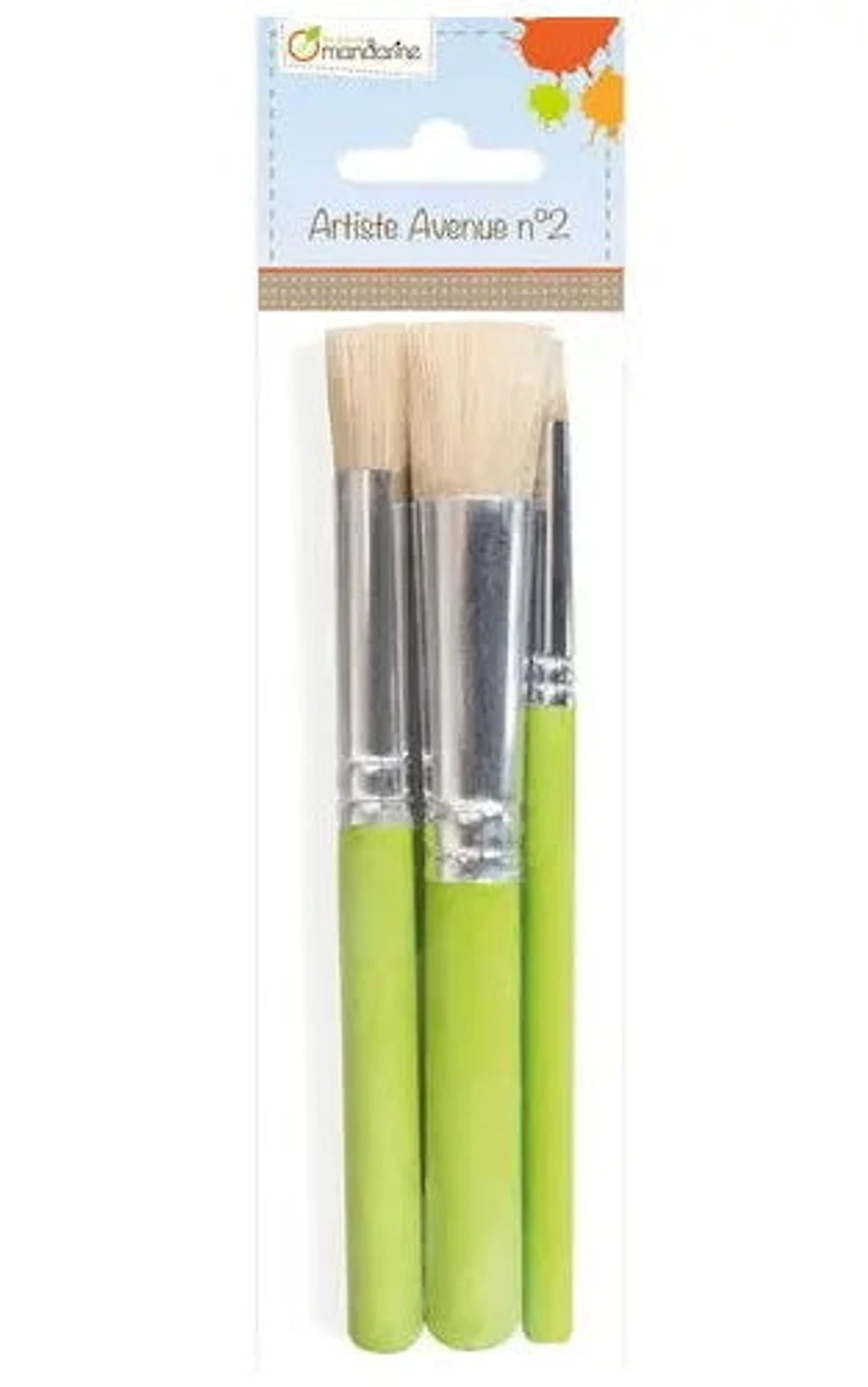Cet ensemble de trois pinceaux à pochoir en fibres synthétiques a été conçu pour faciliter l'apprentissage de la peinture au pochoir. Plutôt épais, ils conviennent aussi bien pour l'application de gouache que d'acrylique. Les petits amateurs de pochoirs adoreront. 3 ans et plus.