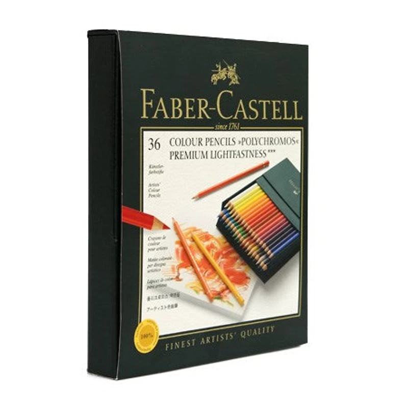 Le coffret de crayons Polychromos de Faber-Castell comprend des crayons riches en pigments de très bonne qualité qui offrent des couleurs vives au pouvoir couvrant, résistantes à l’eau et à la lumière. Les crayons de couleur Polychromos sont dotés d´une mine tendre et épaisse de 3,8 mm. Ils offrent une excellente adhérence sur plusieurs supports : papier, carton, bois ou textile. On retrouve le code EAN sur chaque crayon.