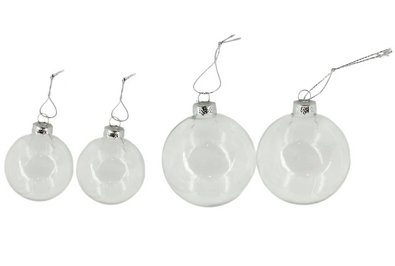 Ens. 4 boules transparentes à décorer 6cm et 8cm