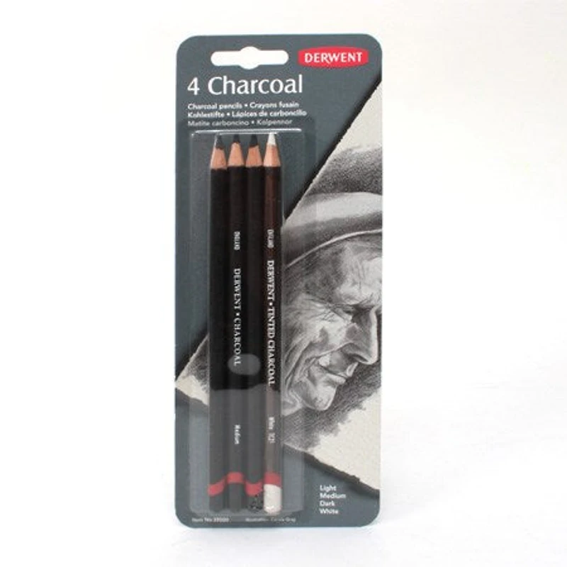 Les crayons fusains Derwent sont faits de particules de fusain qui sont mélangées aux argiles les plus fines et enchâssées dans du bois pour créer un crayon fusain à la mine tendre et riche qui est naturellement soluble à l’eau.Contient un de chaque léger, moyen, foncée et blanc.