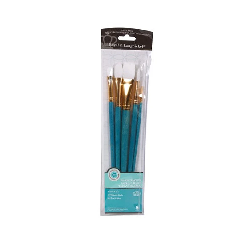 Ens. 5 pinceaux en taklon blanc à manche long